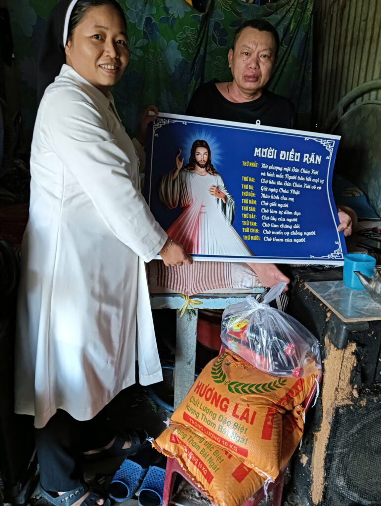 Được sự giúp đỡ của quý ân nhân với chương trình Gạo Hội Hồng Ân, những món quà đong đầy yêu thương được trao tặng đến họ dù chỉ là ký gạo và nhu yếu phẩm thiết yếu của đời sống, nhưng đối với họ đó là tất cả. Họ cảm nhận được tình Chúa không chỉ qua những món quà vật chất mà còn trong tinh thần. Trong hành trình thăm viếng bác ái gần đây, cộng đoàn chúng con có dịp tiếp xúc với những mảnh đời cụ thể, và chính họ – trong hoàn cảnh tưởng như quá đỗi bi thương – lại trở thành ánh sáng đức tin âm thầm nhưng mãnh liệt.