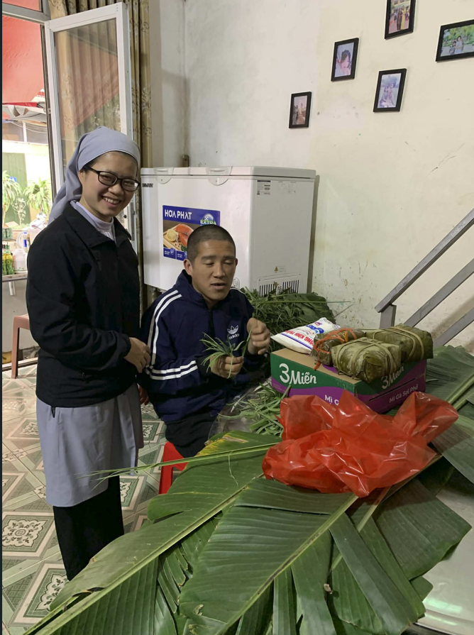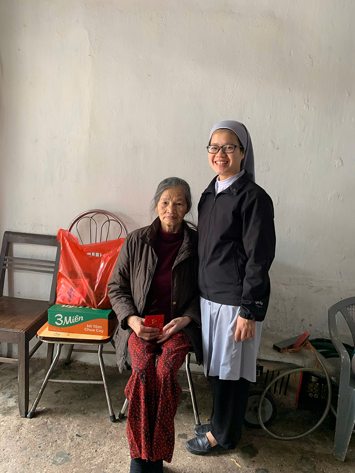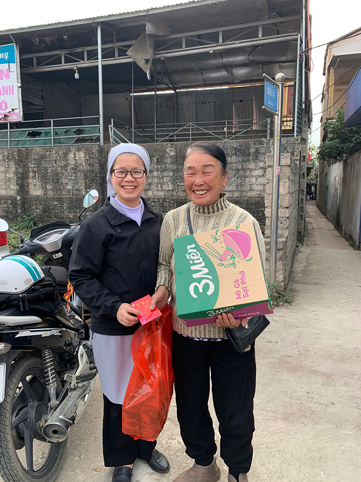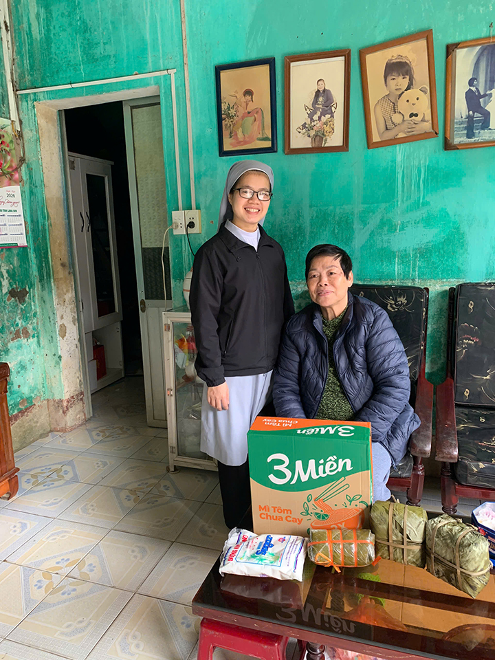 Với tấm lòng yêu thương dành cho những người nghèo, người nhiễm HIV và đặc biệt là những anh chị em chịu hậu quả của chất độc da cam, Sơ đã âm thầm trích phần tiền Tùy Nghi Hội Hồng Ân đã gởi về để làm quà Tết đến cho họ trong dịp Tết Nguyên Đán vừa qua. Những món quà tuy nhỏ bé nhưng chứa đựng sự quan tâm và tình liên đới của đại gia đình Hội Hồng Ân.