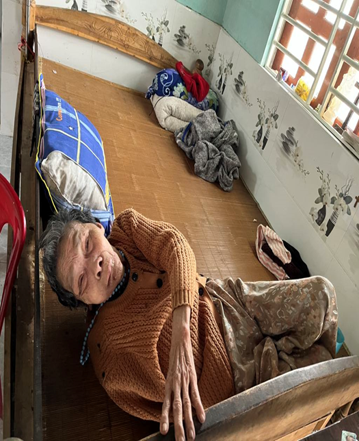 17. Phạm Thị Thời, 90 tuổi *** Sống neo đơn, già yếu, không con cháu, thu nhập không có. Bà Thời phải tự lo liệu trong cảnh túng thiếu, sức khỏe ngày càng suy giảm, cuộc sống càng trở nên khó khăn.