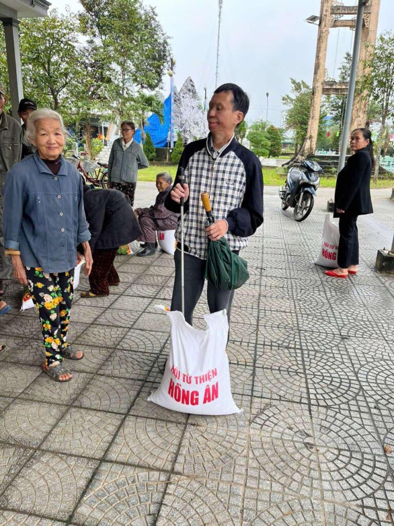 14. Hồ Thúc Minh, 75 tuổi *** Tuổi cao, sức yếu, bệnh tật triền miên, không có ai chăm sóc. Khi nhận được gạo Hồng Ân, ông nghẹn ngào vì tình thương và sự quan tâm từ cộng đồng.