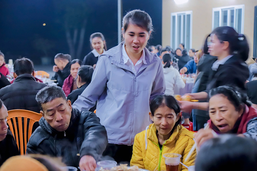 Hiểu được những khó khăn này, các Sơ đã tổ chức bữa cơm tươm tất cuối năm, mang đến không chỉ thức ăn mà còn là tình thương, sự quan tâm và hy vọng. Những món quà nhỏ và phần ăn đầy đủ giúp bệnh nhân cảm thấy được trân trọng, được sẻ chia, và bớt đi phần nào nỗi khốn khó trong cuộc sống.