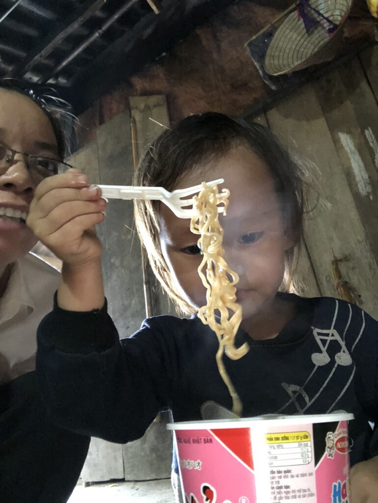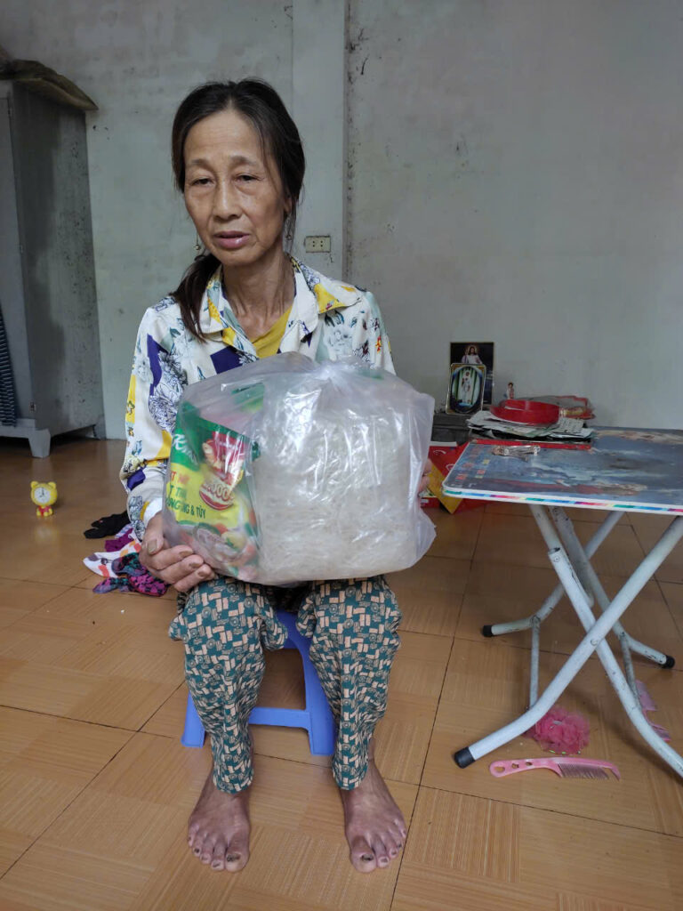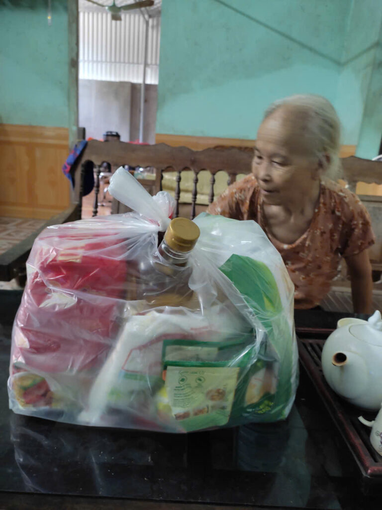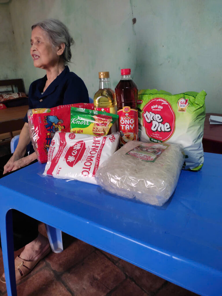 Chị em đã thay mặt quý ân nhân trao tặng những món quà nhỏ để khích lệ và nâng đỡ tinh thần bà con. Sau Thánh lễ, Cha xứ và chị em cùng giáo dân chia sẻ bữa tiệc Agape, chỉ là những ly mì gói đơn sơ, nhưng ai nấy đều hạnh phúc. Một người dân xúc động nói: “Lần đầu tiên trong đời được ăn mì trong ly ngon như thế này!”