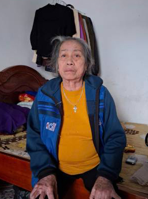 Nhà nghèo, bản thân bà bệnh tật, sức khỏe yếu, đi lại rất khó khăn. Bà sống cùng chồng bị mù cả hai mắt, hoàn toàn không thể lao động. Hai ông bà chạy ăn từng bữa qua ngày.