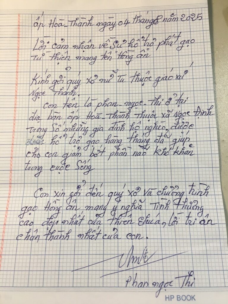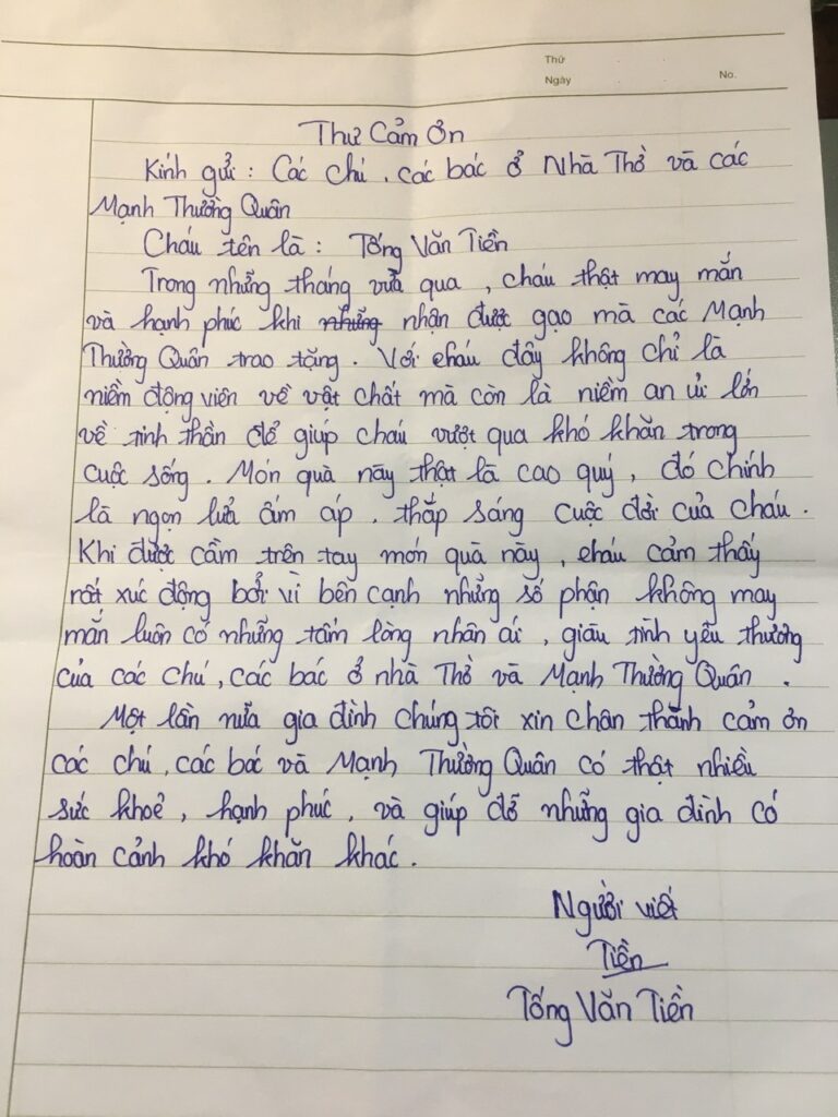 Xin gởi đến quý ân nhân 3 lá thư viết tay đơn sơ, từ những người nghèo khổ và bệnh tật tại Ngọc Thanh, được gửi đến Hội Hồng Ân qua các Sơ Dòng Đa Minh Thánh Tâm. Những dòng chữ mộc mạc ấy là tiếng lòng của những con người không còn sức lao động, đang chật vật trong cảnh thiếu thốn.