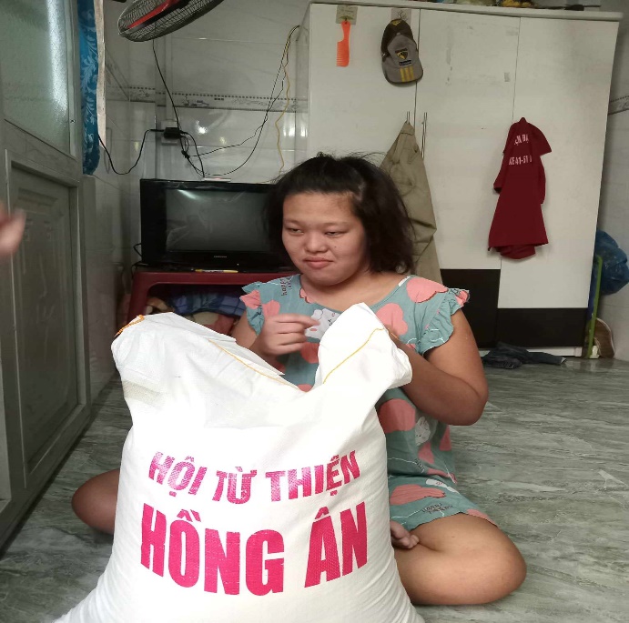 12. Phan Thị Bích Châu, 20 tuổi ***Cháu Bích Châu mắc hội chứng Down, mẹ phải chăm sóc nhưng mẹ cũng không có việc làm ổn định. Hai mẹ con sống dựa vào sự hỗ trợ của người khác, đối mặt với cuộc sống đầy thử thách và thiếu thốn.