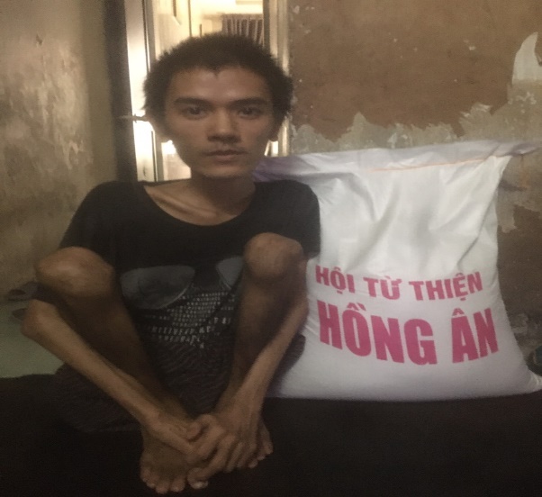 28. Đoàn Phúc Hưng, 25 tuổi *** Mẹ Hưng 64 tuổi, không có việc làm, chăm sóc Hưng bị bại liệt từ nhỏ. Hai mẹ con sống trong thiếu thốn, ngày ngày phải đối mặt với khó khăn về cơm ăn, thuốc men và vệ sinh.