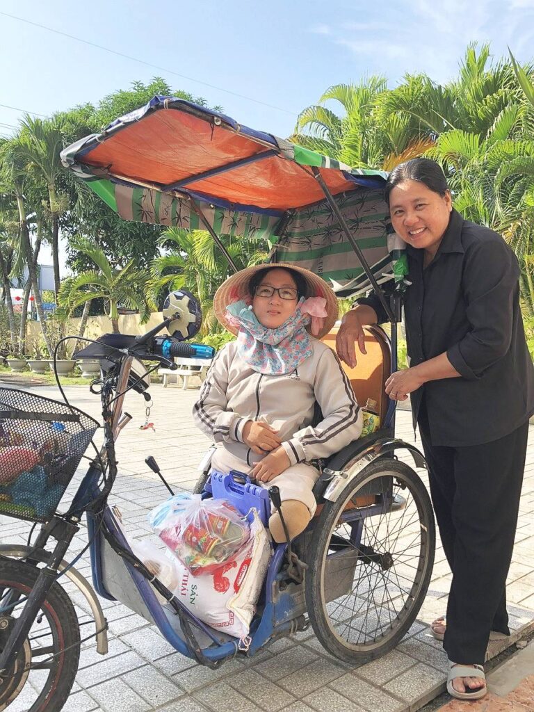 Trước những cảnh đời đáng thương ấy, Hội Hồng Ân đã đồng hành cùng các Sơ Dòng Mến Thánh Giá Mỹ Tho để mang đến những phần quà yêu thương. Số người cần giúp thì nhiều, nhưng nguồn lực lại hạn chế, nên các Sơ phải sắp xếp luân phiên: quý này chia sẻ cho nhóm này, quý sau lại dành phần cho nhóm khác. Mỗi lần nhận được phần thực phẩm thiết yếu – gạo, dầu ăn, nước mắm, ít mì gói – gương mặt họ ánh lên niềm vui và sự biết ơn khó tả. Họ cảm thấy được an ủi, bởi ít là trong những ngày trái gió trở trời, vẫn có chỗ dựa tinh thần và vật chất để yên tâm sống qua ngày.