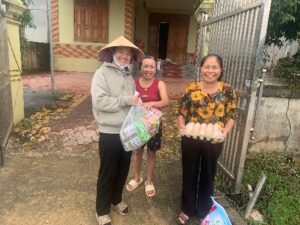 Vì khoảng cách xa và chi phí vận chuyển hàng hóa rất lớn, đồng thời nhu cầu cấp thiết của bà con là khôi phục lại nhà cửa, trồng trọt và chăn nuôi, các Sơ quyết định chọn hình thức trao hỗ trợ bằng hiện kim cho những gia đình bị thiệt hại nặng nhất. Cách làm này giúp bà con chủ động mua giống lúa, gà vịt, hoặc vật dụng gia đình đã mất sau lũ.