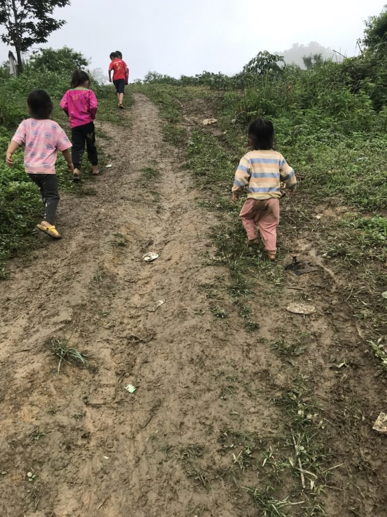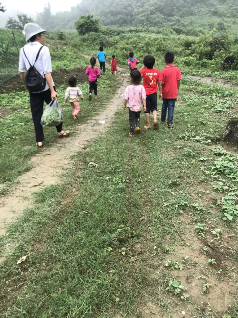 Mới đây, các Sơ đã đến thăm một buôn làng của đồng bào dân tộc thiểu số H’Mông, vốn di chuyển từ vùng Yên Bái về sinh sống. Các Sơ cho biết, đời sống của bà con ở đây còn rất nhiều khó khăn. Mỗi ngày, các em nhỏ phải đi bộ khoảng 7 km đường đồi núi để xuống được đồng bằng, rồi đi thêm 4 km đường bộ mới tới trường học. Ngay cả khi muốn mua chút thực phẩm ở đồng bằng, bà con cũng phải vượt qua chặng đường gian nan ấy, đặc biệt là vất vả hơn nhiều vào mùa mưa.