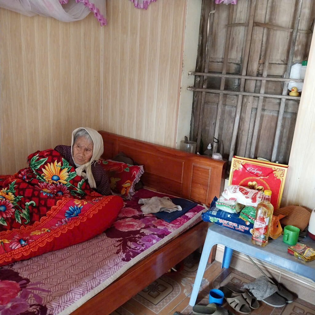 14. Cụ Nguyễn Thị Hải (96 tuổi) *** Cụ già yếu, bị liệt, nằm một chỗ, mọi sinh hoạt đều phải nhờ người thân hỗ trợ.