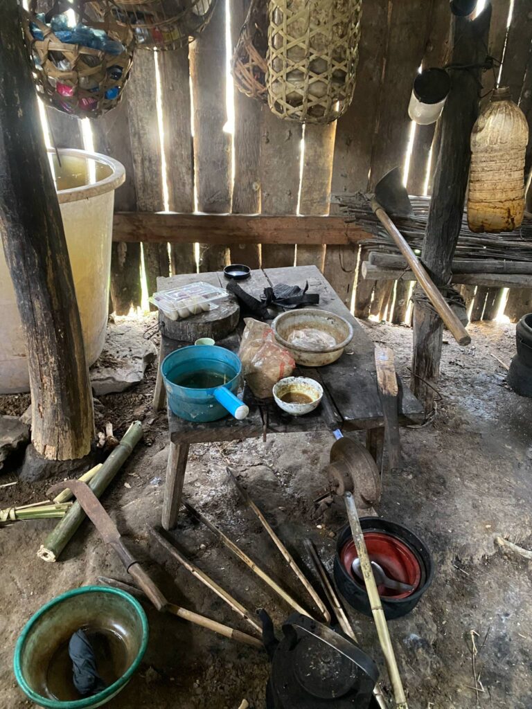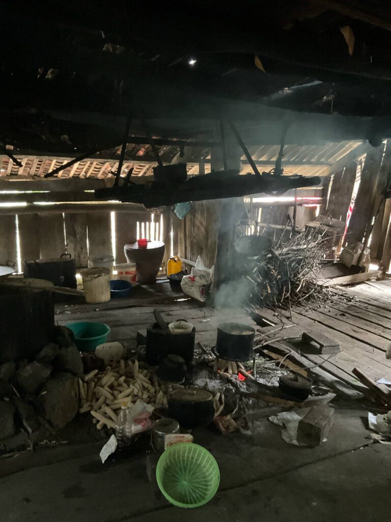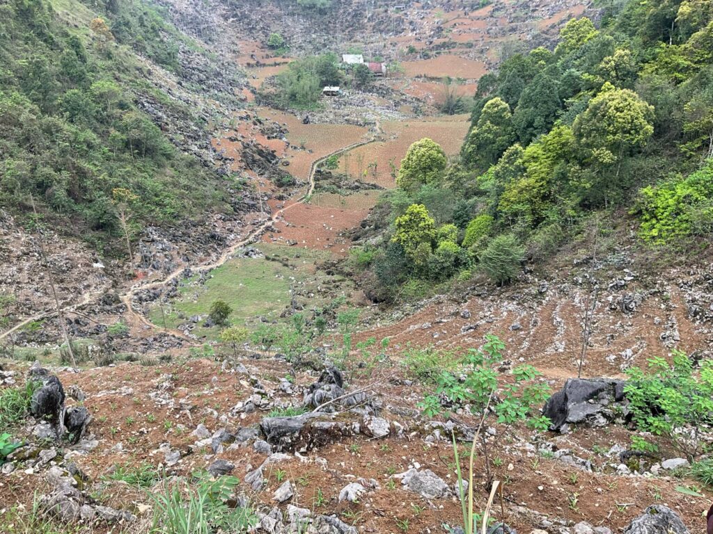Con đường đến bản làng được khoét từ vách núi, uốn lượn hiểm trở theo triền dốc. Đôi chân tôi dường như mỏi nhừ vì đá sỏi gập ghềnh, có những chặng đường tôi phải dừng lại để nghỉ và để thở, nhưng chặng đường này thật sự có thấm vào đâu so với hành trình gian nan mà anh chị em nơi đây phải trải qua mỗi ngày. Cuộc sống nơi đây thật kham khổ, nhìn những người phụ nữ gùi con trên lưng, bên cạnh lại có thêm mấy đứa nhỏ nữa, có em thì đi chân trần, có em thì đeo đôi dép đã rách tả tơi, quần áo thì xộc xệch. Một cuộc sống thật khắc khổ!