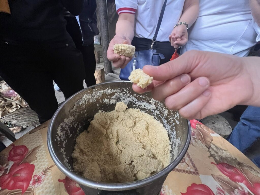 Ngô – loại cây lương thực chính được người dân trồng ở bất cứ đâu có thể: trên vách đá, sườn dốc hay những mảnh đất nhỏ bé hiếm hoi,miễn sao chỗ nào có đất thì chỗ đó có ngô. Chính loại lương thực khó nhọc này lại là thức ăn chính quanh năm dưới dạng “mèn mén” đạm bạc (ngô được xay ra và hấp lên), vì họ chỉ được ăn cơm hai lần trong năm vào dịp Tết và ngày Rằm. Một bà mời tôi ăn thử mèn mén, tôi nói với bà: “Giờ Sơ ăn thì cả nhà lấy gì mà ăn”. Bà nói với tôi: “không lo đâu, cứ ăn đi”. Trái tim tôi khựng lại, đôi mắt tôi dường như mờ đi, bởi tình cảm yêu thương, bởi sự tươi cười đón tiếp vô vị lợi của họ.